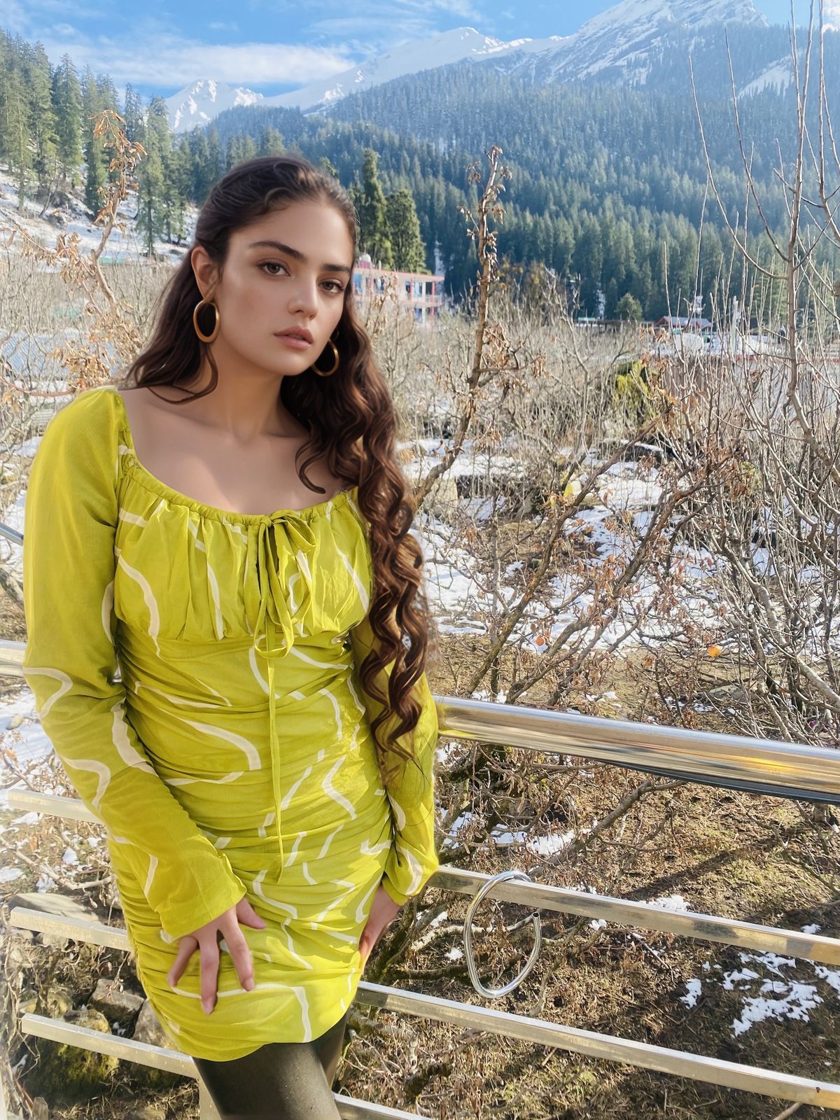 Lime Glow Ruched Mesh Bodycon Mini Dress