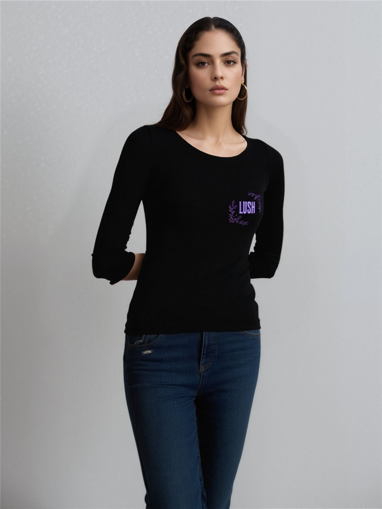 Lush Black Long Sleeve T-Shirt for Women – Casual Everyday Wear