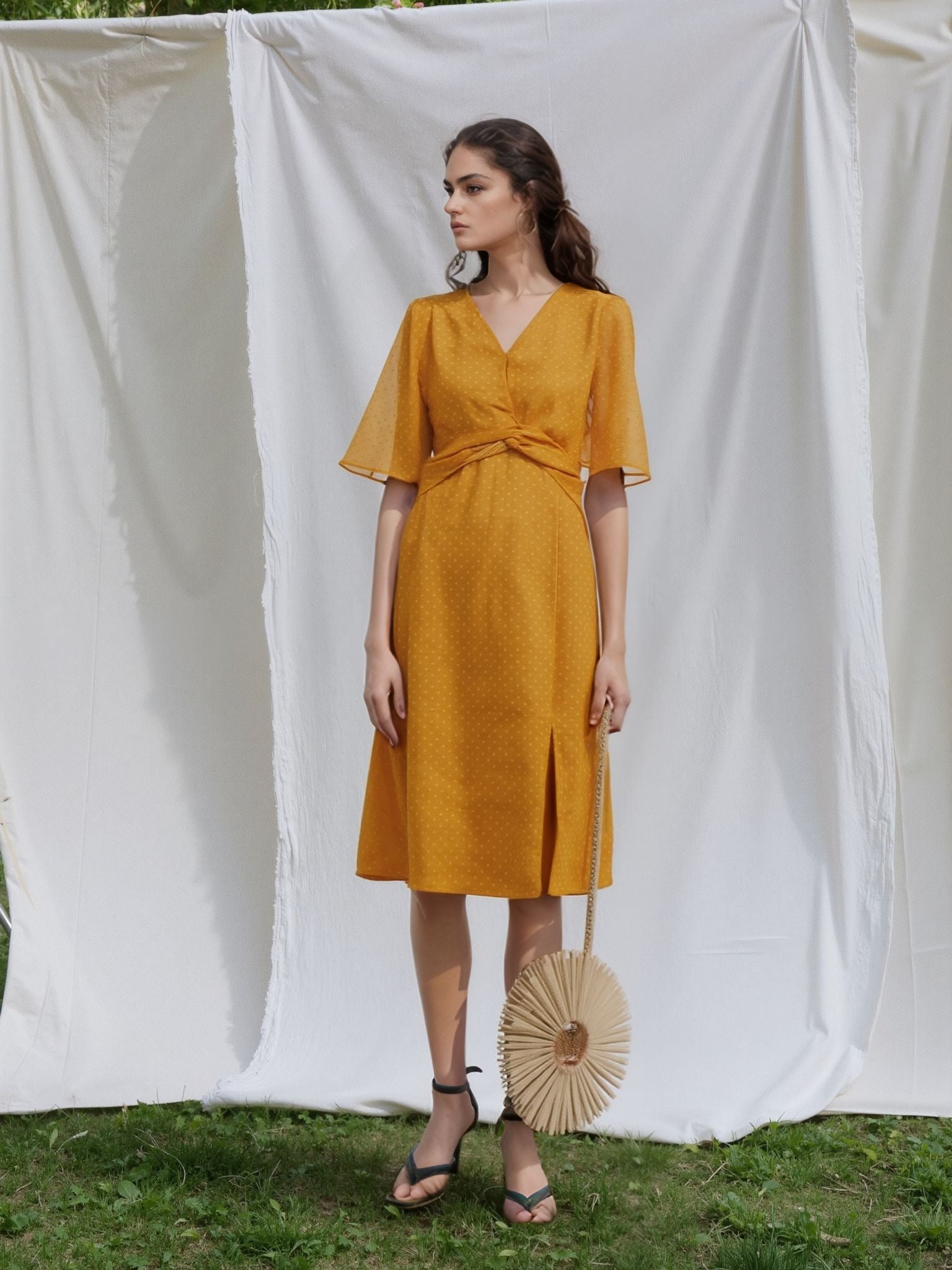 Embrace breezy elegance with this mustard yellow midi dress, perfect for summer brunches, outdoor events, or casual strolls, this piece blends comfort and style effortlessly.